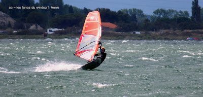 Mercredi, Coudalère, honnêtement je n'y croyais pas trop, mais pas trop envie d'aller plus haut je tente Coudalère, il y a du vent mais le temps d'aller chercher mes bottillons que j'avais oublié, le vent tombe. Sure de moi j'avais grée 4.2 sur ma grosse 106 litres que je suis allée reherché au mag. La bonne idée, le volume ça vaut le coup, j'ai pu naviguer sans problèmes alors que le vent n'était ni fort ni régulier! du coup une belle journée avec en prime une grande douceur et je n'ai pas rencontré d'algues!!
