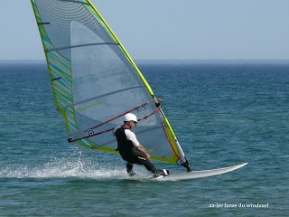 Vendredi, PLN. Windguru avait vu juste!!! il avait annoncé une petite tramontane, et vu la châleur je les ai cru. Direction la plage , gros matos pour un vent entre 12 et 17 noeuds avec quelques molles. L'eau est turquoise, magnifique! il fait une châleur écrasante et ça fait du bien de planer. 3 fanas sur une plage déserte! avec Dédé, Toutoune et Annie.