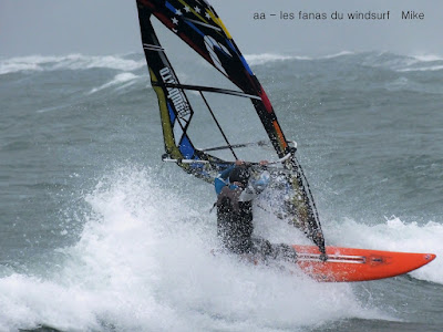 Lundi, Cap d'Agde. A notre arrivée le vent souffle fort, tout le monde change de voile ok, je mets 4ms. Grave erreur car le vent va faiblir trés vite, cela va devenir beaucoup trop juste, en plus je n'ai que la 76 et là çà devient chaud . En fait le vent ne va pas arrêter d'être ON-OFF. Puis à un moment les gouttes commencent à tomber, j'en profite pour dégréer et rentrer. En regardant les relevés il est clair que le vent est remonté mais perso j'en avis mon compte de bouillons. Là je suis bien, j'ai presque fini tout ce boulot et le fourgon a tenu le coup.