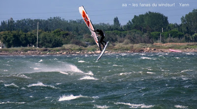 Samedi, Coudalère. Baston aujourd'hui, arrivés tôt en regardant la météo. Pas forcément necessaire car le vent va tenir et même se renforcer. Brouillon par moments mais de trés belles périodes aussi. Pas trop en forme c'est dommage, je vais tenir jusqu'à 15h00, 3.7 sur 68 litres, par moments sous toilée ce qui fatigue beaucoup. La direction est aussi irrégulière, bien ouest au début elle va devenir plus nord ouest voir nord par moments, tout çà dans le même bord lol. Bien contente d'être arrivée tôt car à mon départ çà afflue. Un bon Couda d'été.
