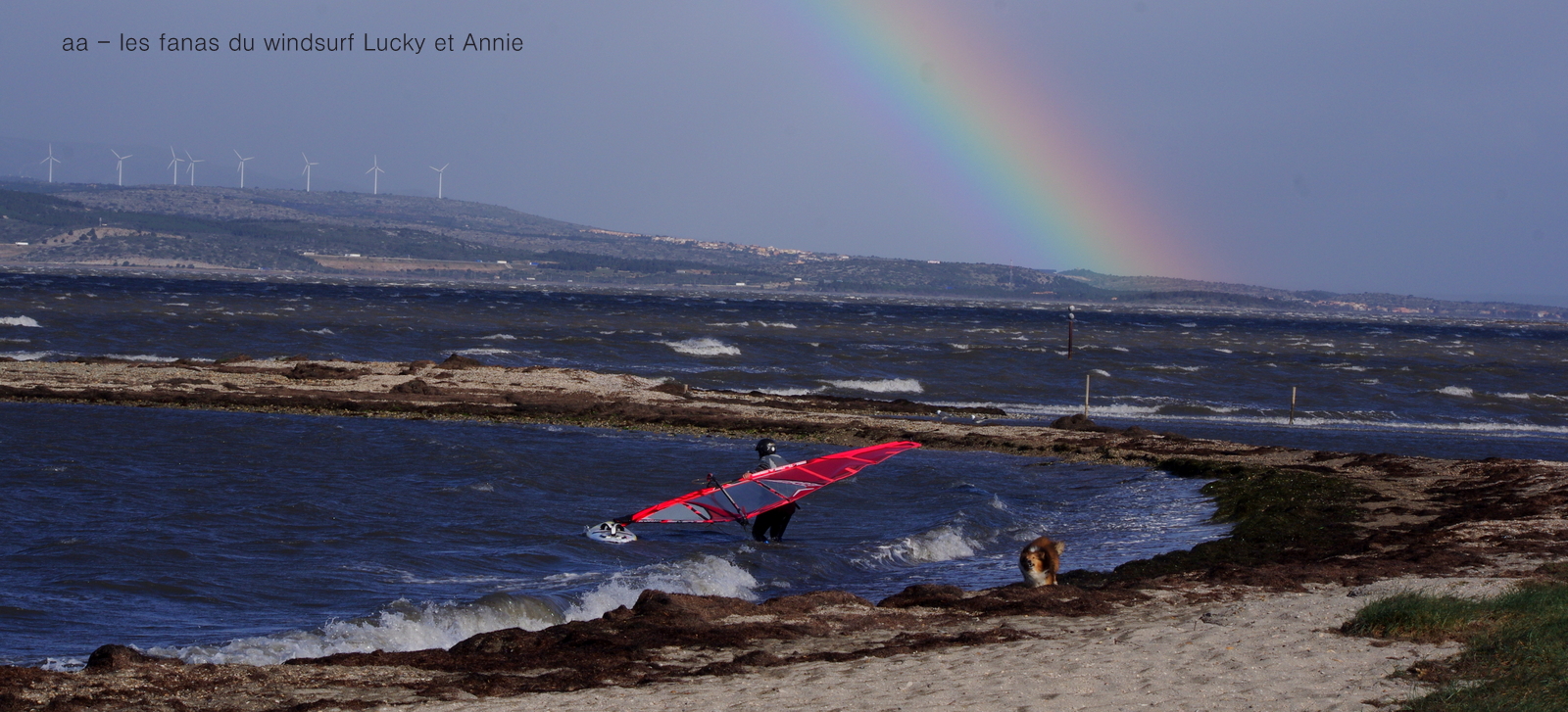 Jeudi, Coudalère. Il fallait y croire mais pari gagné puisque le vent y a fait une apparition remarquée!! 50 noeuds et même plus dans les rafales, mais il fallait passer la dévente du départ. Trés violent et acrobatique car quelques molles dévastatrices nous mettaient en difficulté. Vent d'abord sud-ouest puis ouest complet, des grosses vagues par moments. Tout ça en plein contre jour, nos pauvres yeux!! surtout ceux de Toutoune!
