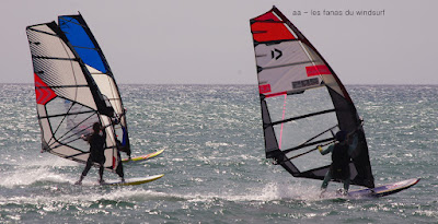 Dimanche, Le Rouet. Arrivée 7h00, pas trop de vent, puis ça se met en route il y a des petites vagues , 5.8 sur 96, trés vite le vent monte , trés fort, à la rue je change pour 5ms et diminue l'aileron, le vent monte encore je mets 4.5 et un aileron encore plus petit, rien n'y fait je ne peux pas profiter des vagues à la rue du flotteur? Vous me direz pourquoi ne pas avoir changé de flotteur?? parcequ'on a cru aux prevs et que je n'avais pris que le gros flotteur tiens, comme beaucoup. Fourbue je m'arrête quand la foule arrive, et quand je parle de foule ce n'est pas un euphémism. Plus jamais sans mon petit flotteur.