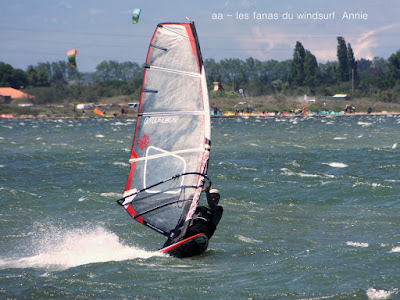 Jeudi, Coudalère. On l'avait prévu, Coudalère nous manque, ça bastonne de nord-ouest au Rouet ,pas trop envie de manger du sable, allez nous allons à Coudalère. Il fallait être optimiste car au début rien de trés bon puis les rafales envahissent tout le spot et je peux me régaler en 4.7 sur 76 litres. Les copains qui nous manquaient aussi, la bonne ambiance, l'eau est bonne et le soleil brille.