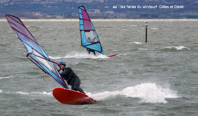 Samedi, Coudalère. On pensait avoir une journée plus régulière qu'hier, hélàs ce fût le contraire, de plus en plus irrégulier, assez désespérant, toujours ce vent trés ouest avec son lot de gros nuages. Qui dit vent irrégulier dit plan d'eau peu formé n'autorisant que de petits sauts, mais la bonne ambiance et la douceur de l'air incroyable nous ont permis de passer une belle journée.